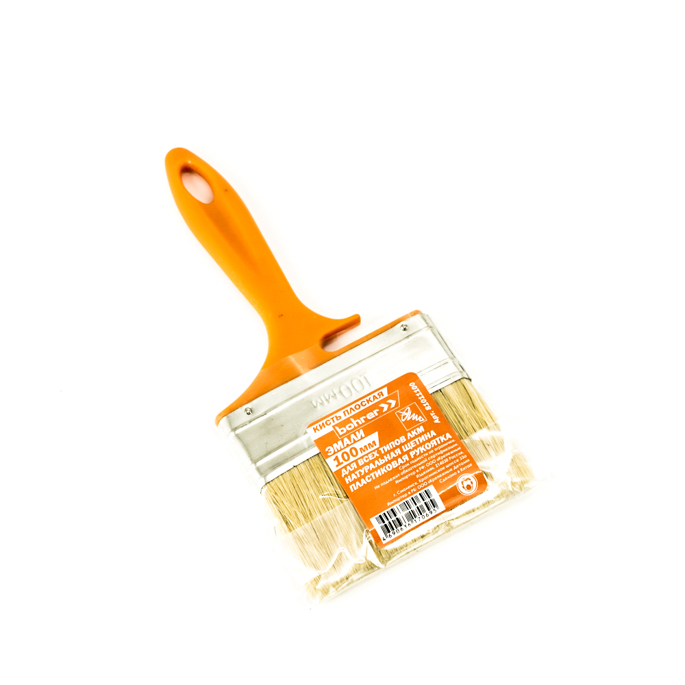Кисть плоская Bohrer "Эмали" 100 мм (натур. щетина 51 х12 мм) оранж. пластиковая рукоятка Упаковка 12 шт.