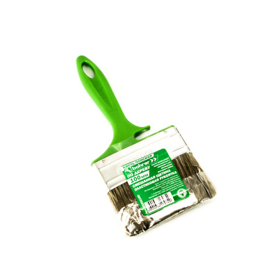 Кисть плоская Bohrer "По дереву" 100 мм (смешан. щетина 51 х12 мм) зеленая пластиковая рукоятка Упаковка 12 шт.