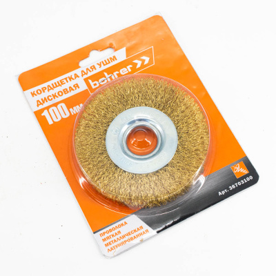 Кордщетка Bohrer дисковая "Колесо" латунированная мягкая 100 мм (толщ. проволоки 0,3 мм) для дрели (в блистере) (120/10/1)