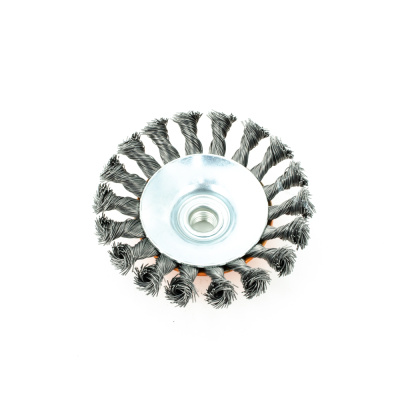 Кордщётка используется для шлифовальных и обдирочных работ в угловых шлифовальных машинах. Оснастка крепится к инструменту при помощи гайки М14.