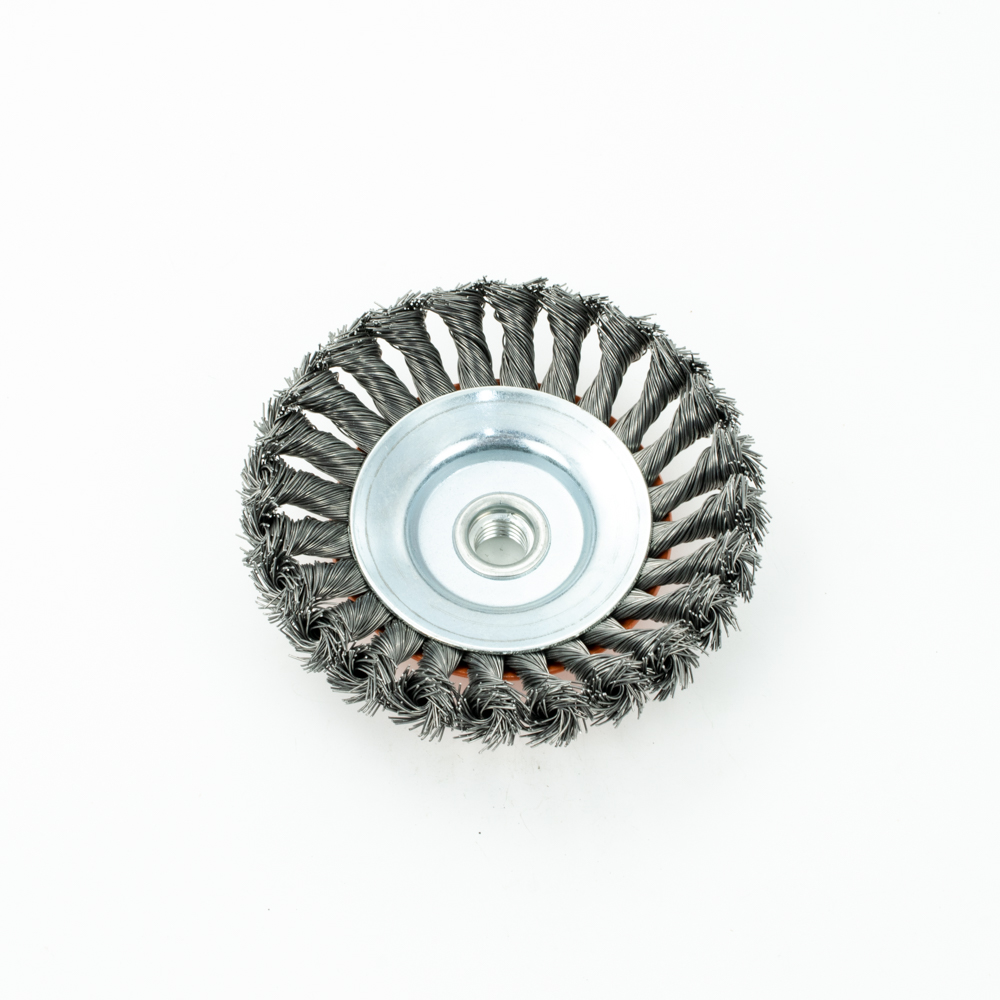 Кордщётка используется для шлифовальных и обдирочных работ в угловых шлифовальных машинах. Оснастка крепится к инструменту при помощи гайки М14.