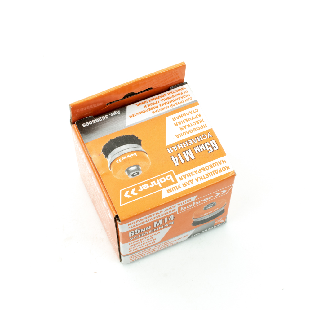 Кордщетка Bohrer чашеобразная витая жесткая усиленная кольцом 65 мм (толщ. проволоки 0,5 мм) для УШМ (М14) (80/1)