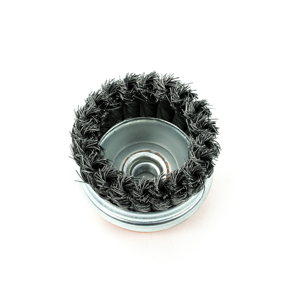 Кордщетка Bohrer чашеобразная витая жесткая усиленная кольцом 75 мм (толщ. проволоки 0,5 мм) для УШМ (М14)