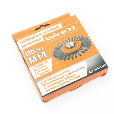 Кордщетка Bohrer дисковая витая жесткая 115 мм (толщ. проволоки 0,5 мм, гайка М14) для УШМ (60/1)