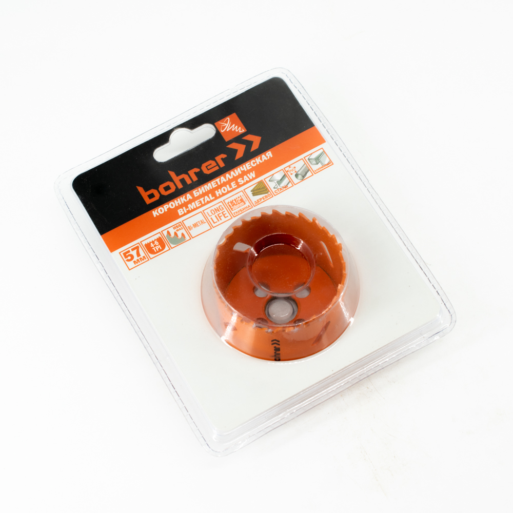 Коронка биметаллическая Bohrer 57 мм (сталь HSS M42) (сталь/дер/алюм/пласт) (блистер)