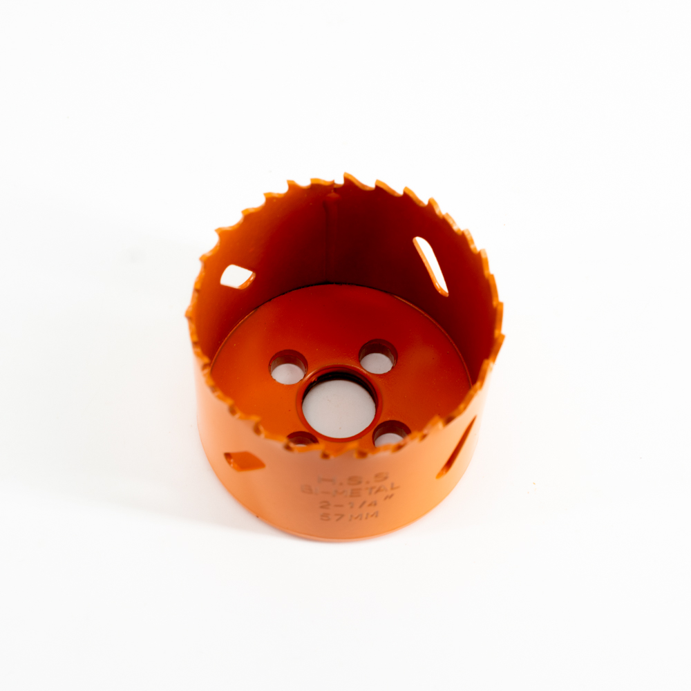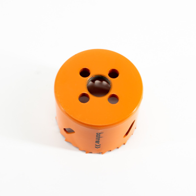 Коронка биметаллическая предназначена для сверления сквозных отверстий большого диаметра в дереве, пластике и в тонколистовых металлах: углеродистые, легированные и нержавеющие стали, цветные металлы и другие материалы с твердостью до 33 HRC по шкале Роквелла. Рекомендуется использовать системы охлаждения инструмента, в частности охлаждающе-смазывающие масла.