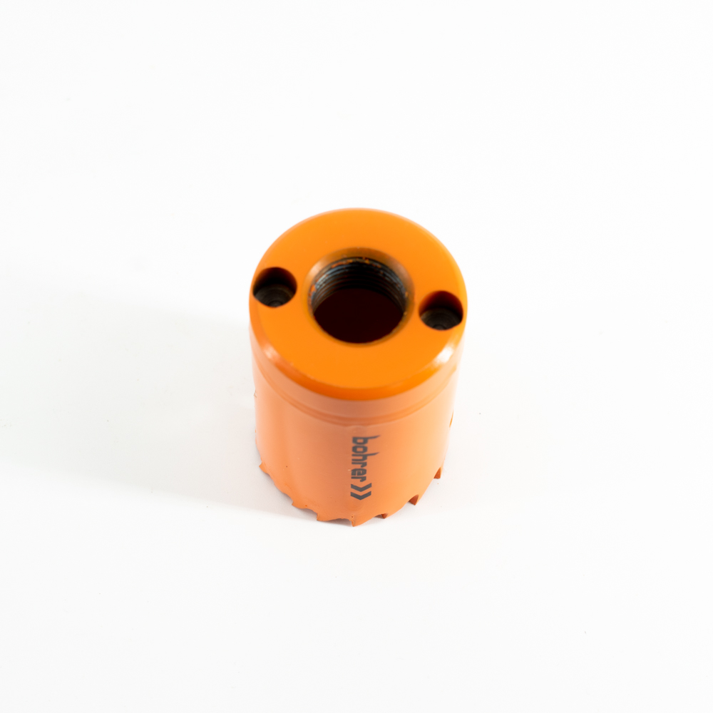 Коронка биметаллическая предназначена для сверления сквозных отверстий большого диаметра в дереве, пластике и в тонколистовых металлах: углеродистые, легированные и нержавеющие стали, цветные металлы и другие материалы с твердостью до 33 HRC по шкале Роквелла. Рекомендуется использовать системы охлаждения инструмента, в частности охлаждающе-смазывающие масла.