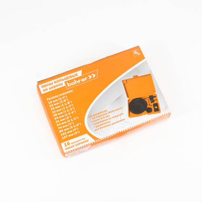 Набор кольцевых пил Bohrer по дереву (коронки 19-22-29-32-38-44-51-64-76-89-102-127 мм;державка со св.;ключ) (16 предметов) (20/1)