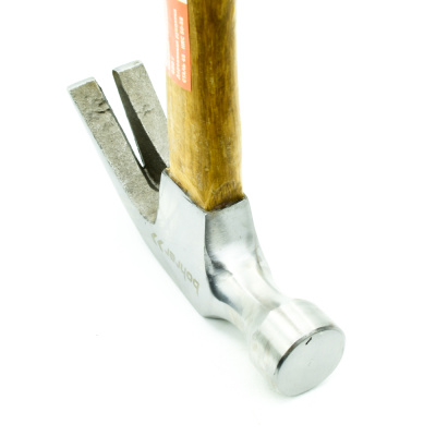 Молоток-гвоздодёр широко используется для работы в столярных мастерских. Стальной боек инструмента оснащен двумя типами рабочих частей - плоским круглым бойком с насечками с одной стороны и гвоздодером с другой стороны. Молоток прост и удобен в работе.