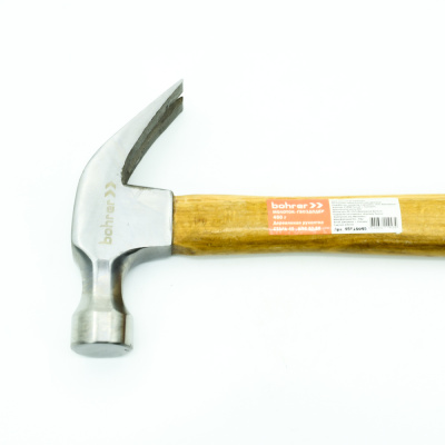 Молоток - гвоздодёр Bohrer 450 г. с деревянной рукояткой