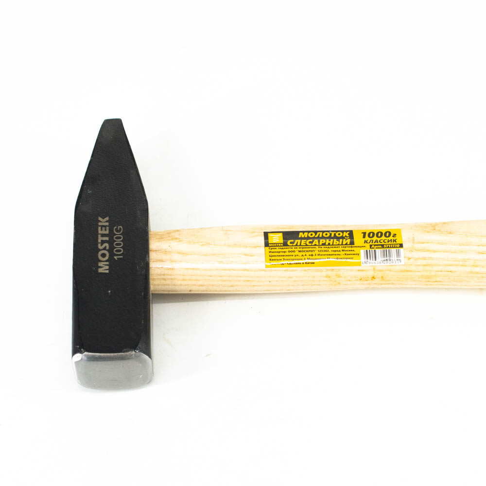 Молоток слесарный MosTek Классик 1000 г. (деревянная рукоятка, квадратный боек, cталь 45) (24/6/1)