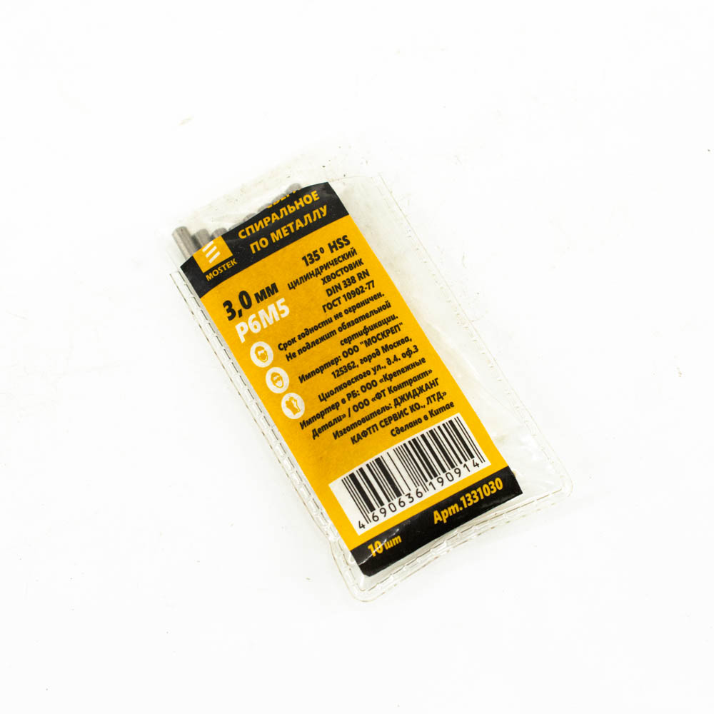 Сверло MosTek по металлу 3,0 мм ц/х HSS (Р6М5) (Упаковка 10 штук)