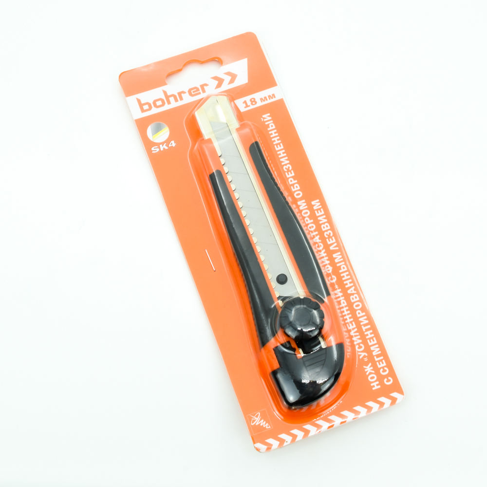 Нож Bohrer с выдвижными лезвиями 18 мм усиленный, двухкомпонентная ручка, регулируемый фиксатор лезвия (сталь SK4)