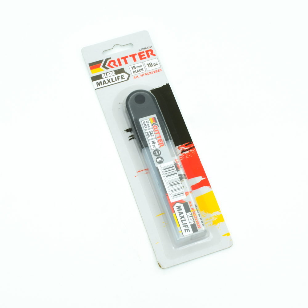 Лезвия Ritter MaxLife 18 мм для ножей сегментированные (сталь SK2 Black особопрочная) (10 шт. в пластиковой уп.) (200/10/1)