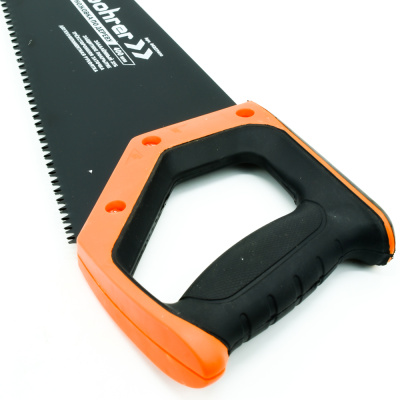 Ножовка по дереву идеально подходит как для работы со строительными материалами, так и для дачи. Благодаря высокому качеству стали 65Mn полотно остается гибким и устойчивым к износу на протяжении всего периода эксплуатации. Размер зуба 5 мм. Ручка двухкомпонентная. ABS+TPR