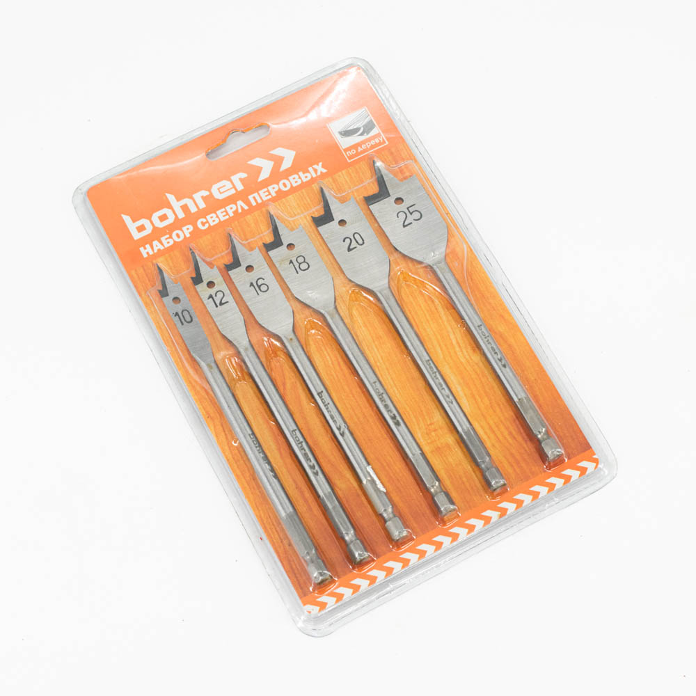 Набор сверл Bohrer перовых по дереву 10/12/16/18/20/25 х 152 мм (6 шт.)
