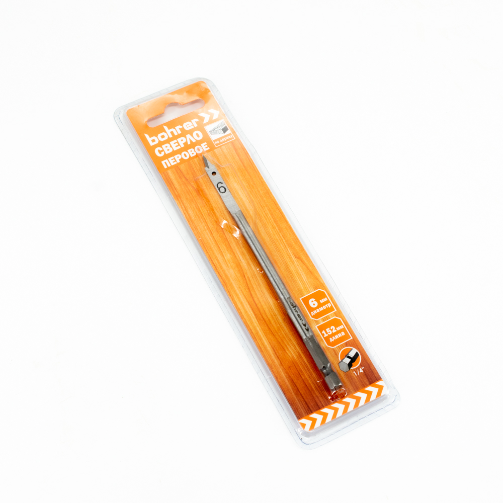 Сверло Bohrer перовое по дереву 6 х 152 мм (в блистере)