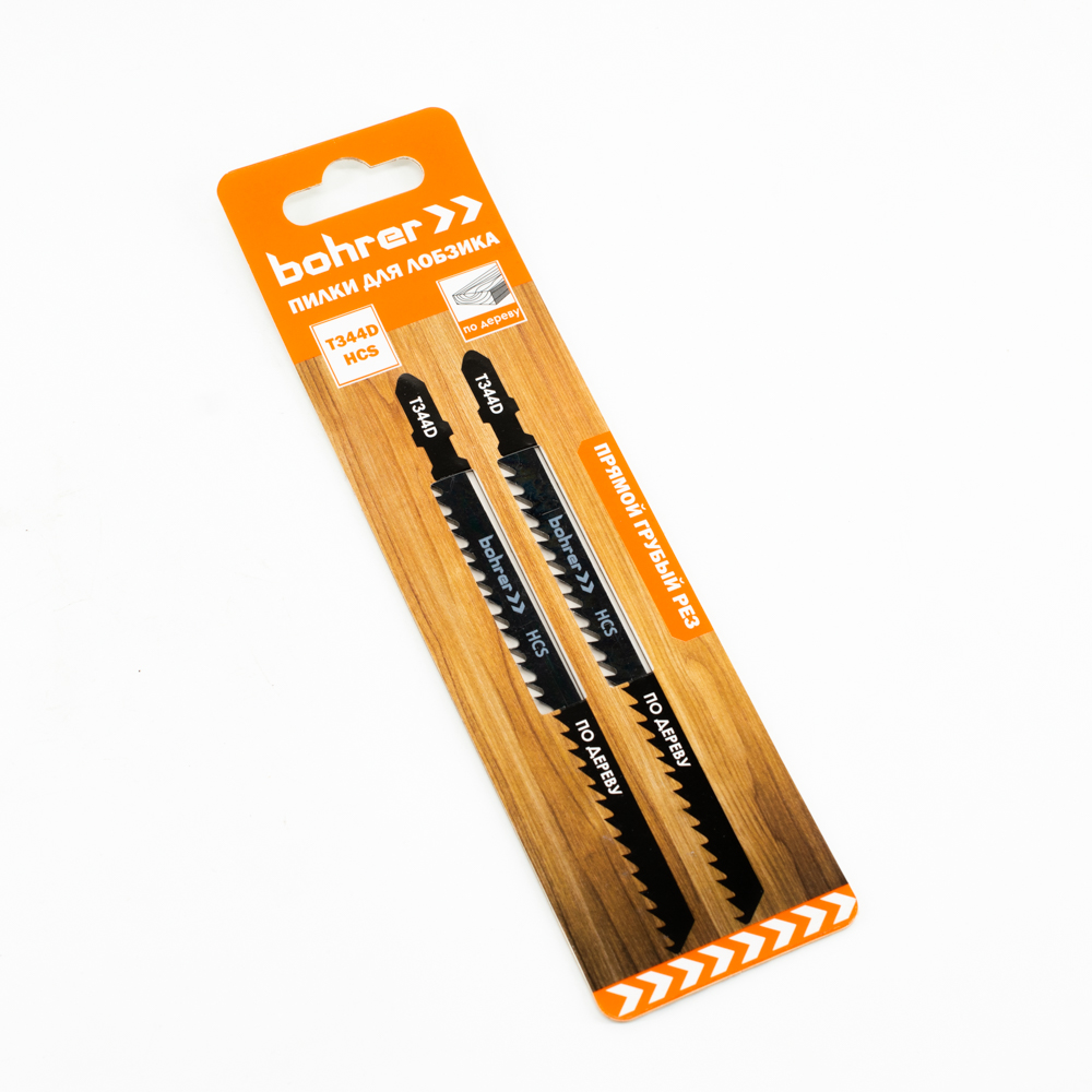 Пилки для лобзиков Bohrer по дереву Т344D HCS 135/110мм, шаг 4 мм (Прямой грубый рез) (2 шт. в уп.)