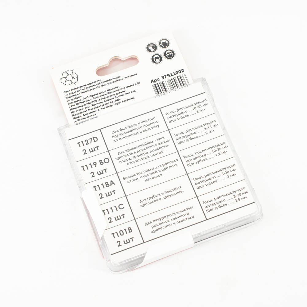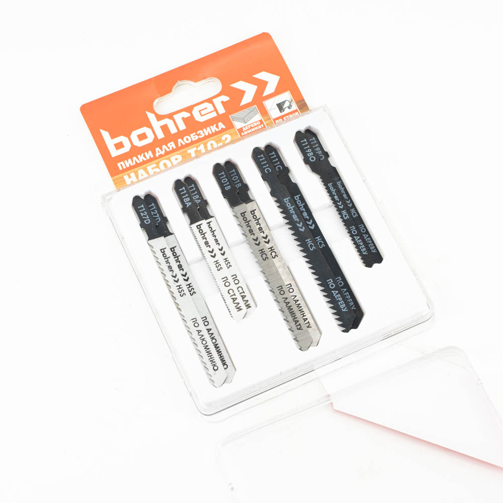 Набор пилок Bohrer T10-2 для лобзика (дер/лам/пласт/сталь) (T127Dx2,T119BOx2,T118Ax2,T111Cx2,T101Bx2) (10 пилок)