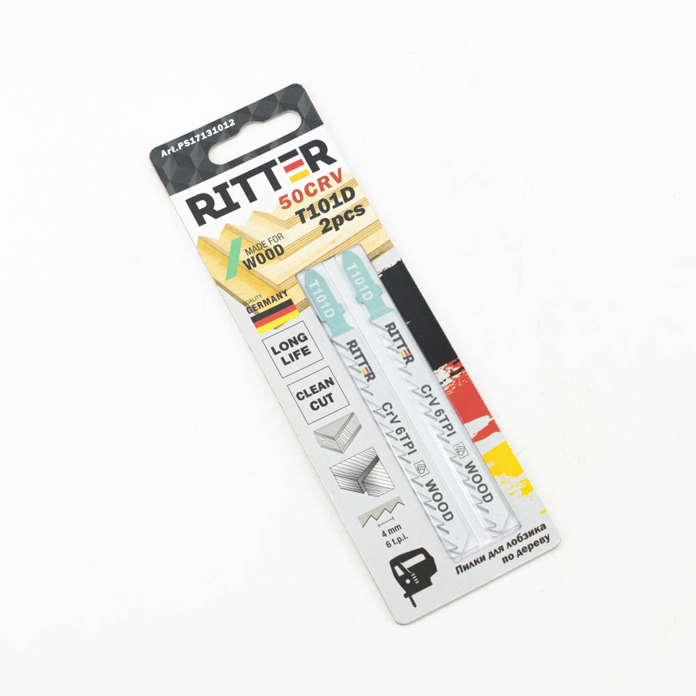 Пилки для лобзиков Ritter Eco по дереву Т101D CrV 100/75мм, шаг 4 мм 6TPi (Прямой чистый рез) (2 шт. в уп.) (200/25/1)