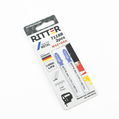Пилки для лобзиков Ritter Eco по стали Т118B M42+D6A 75/50мм, шаг 2 мм 12TPi (2 шт. в уп.) (200/25/1)