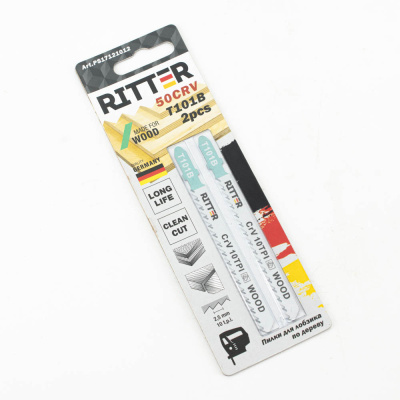 Пилки для лобзиков Ritter Eco по дереву Т101B CrV 100/75мм, шаг 2,5 мм 10TPi (Прямой чистый рез) (2 шт. в уп.) (200/25/1)