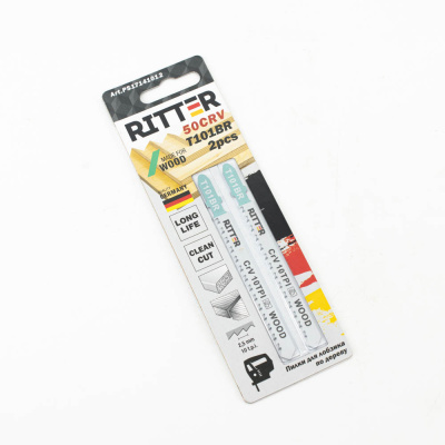 Пилки для лобзиков Ritter Eco по дереву Т101BR CrV 100/75мм, шаг 2,5 мм 10TPi (Прямой чистый, обратный) (2 шт. в уп.) (200/25/1)