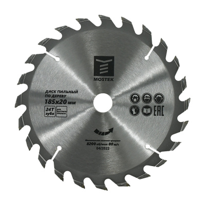 Диск пильный по дереву MosTek 185x20/16 мм, 24Т зуба (50/25/1)