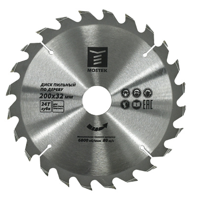 Диск пильный по дереву MosTek 200x32/30/20 мм, 24Т зуба (25/1)