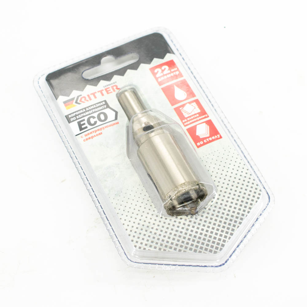 Коронка алмазная Ritter Eco по стеклу и керамограниту 22 мм (блистер)