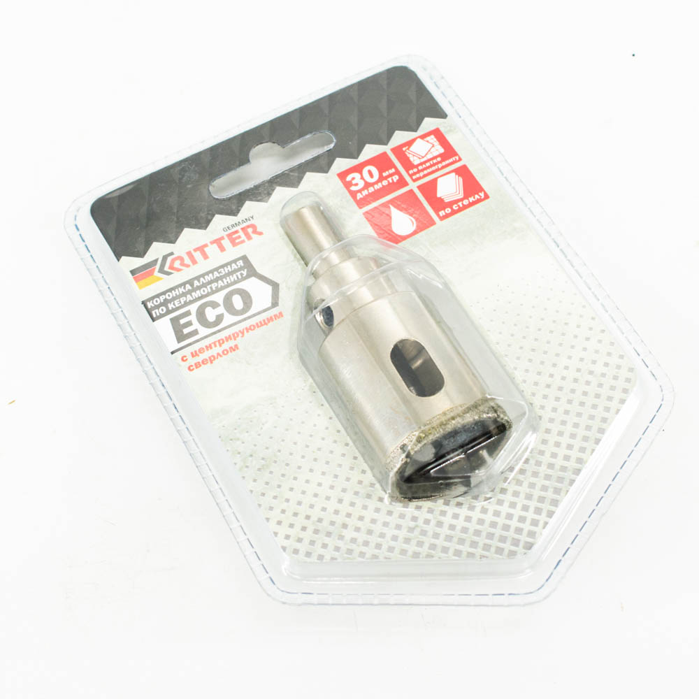 Коронка алмазная Ritter Eco по стеклу и керамограниту 30 мм (блистер)