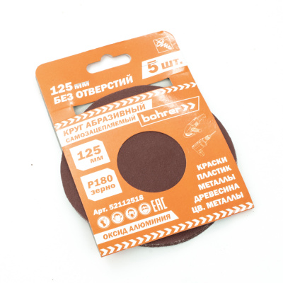 Круг Bohrer абразивный 125 мм Р180 под липучку (оксид алюминия) (Упаковка 5 шт.)