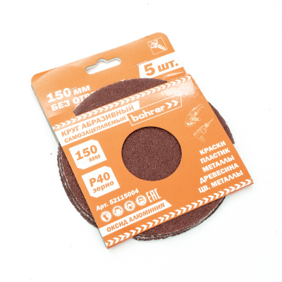 Круг Bohrer абразивный 150 мм Р40 под липучку (оксид алюминия) (Упаковка 5 шт.)