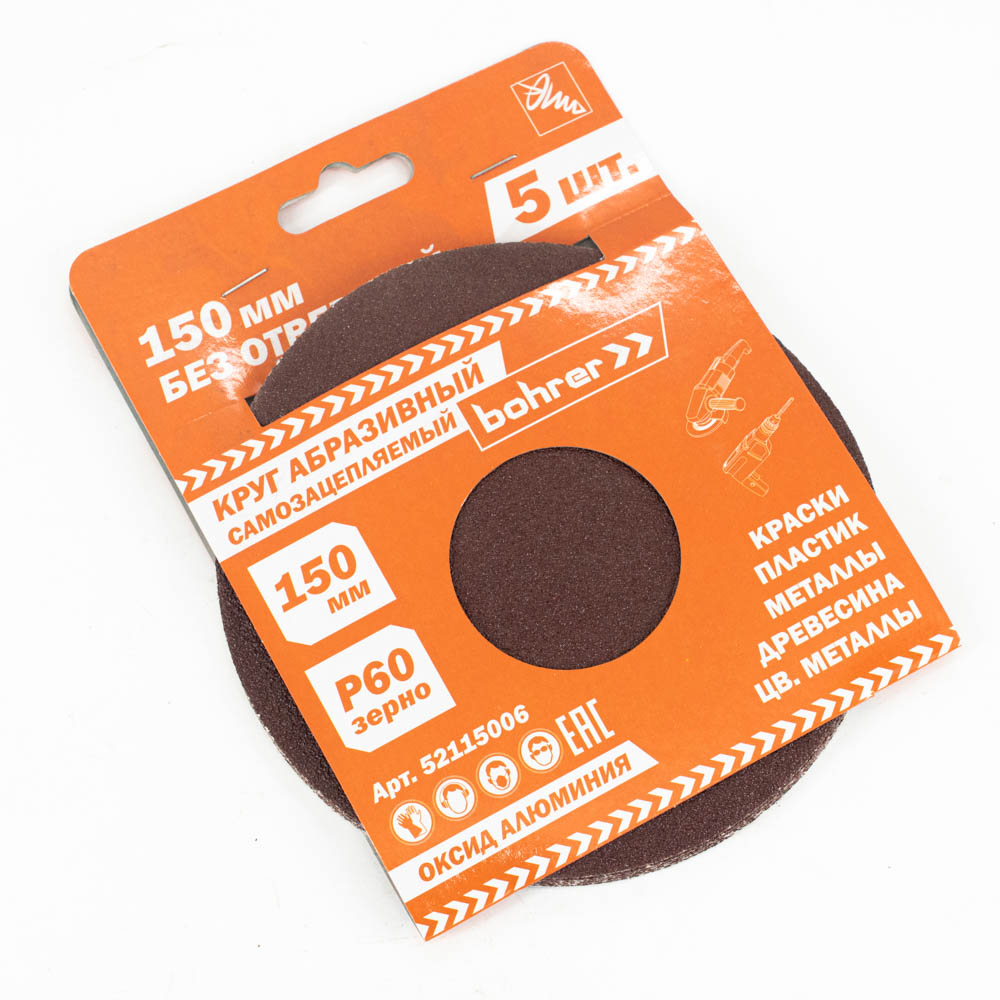 Круг Bohrer абразивный 150 мм Р60 под липучку (оксид алюминия) (Упаковка 5 шт.)