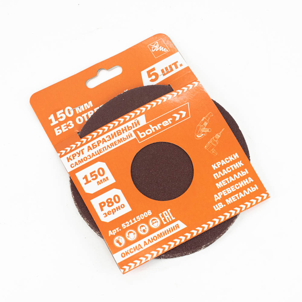 Круг Bohrer абразивный 150 мм Р80 под липучку (оксид алюминия) (Упаковка 5 шт.)