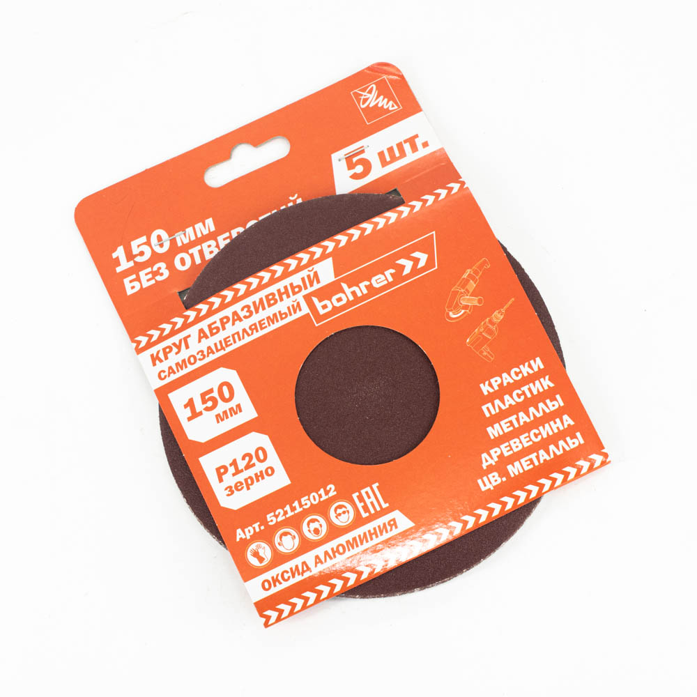 Круг Bohrer абразивный 150 мм Р120 под липучку (оксид алюминия) (Упаковка 5 шт.)