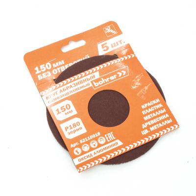 Круг Bohrer абразивный 150 мм Р180 под липучку (оксид алюминия) (Упаковка 5 шт.)