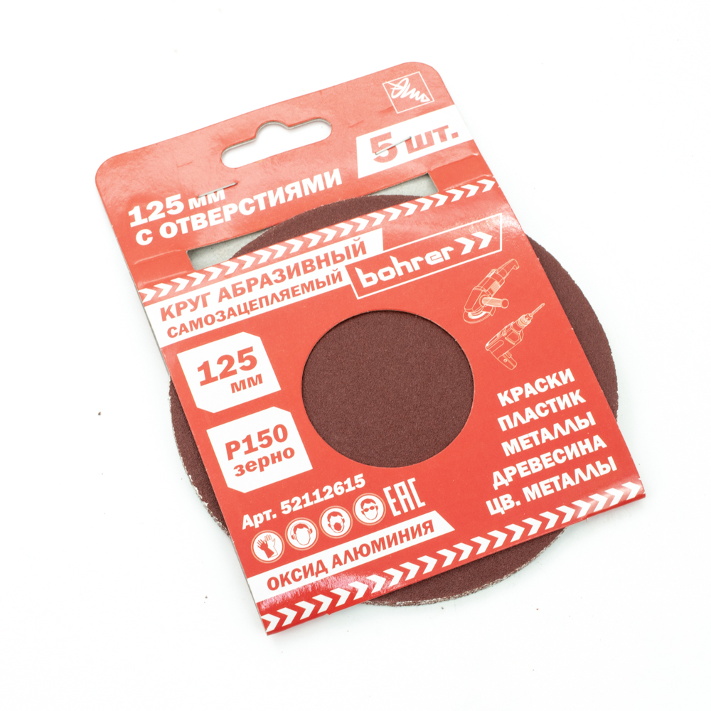 Круг Bohrer абразивный 125 мм Р150 под липучку (оксид алюминия) (с отверстиями) (Упаковка 5 шт)