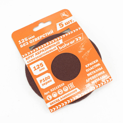 Круг Bohrer абразивный 125 мм Р100 под липучку (оксид алюминия) (Упаковка 5 шт.)