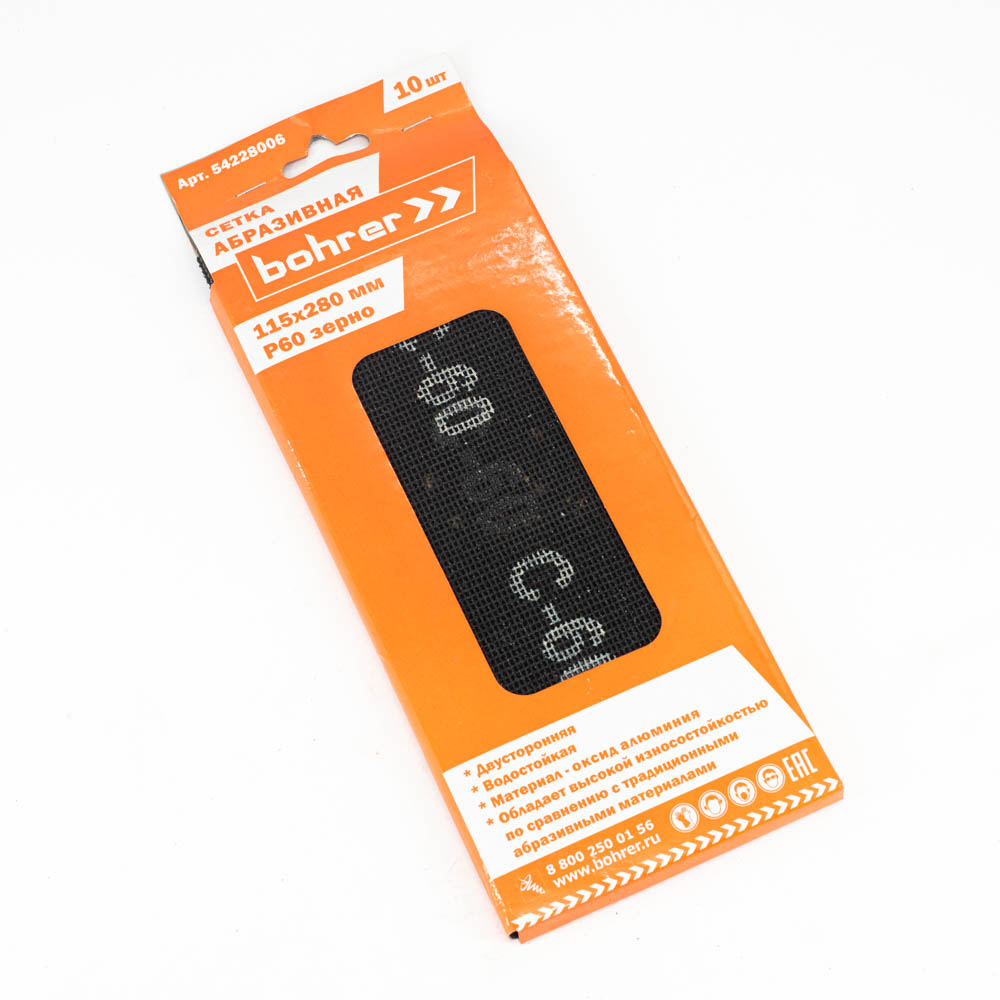 Сетка Bohrer абразивная 115х280 мм Р60 (10 шт в уп.)