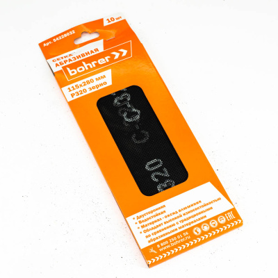 Сетка Bohrer абразивная 115х280 мм Р320 (оксид алюминия) водостойкая двусторонняя (10 шт в уп.) (100/1)