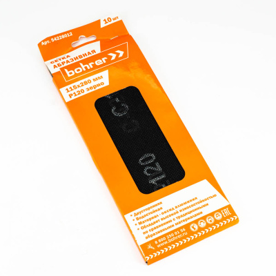 Сетка Bohrer абразивная 115х280 мм Р120 (оксид алюминия) водостойкая двусторонняя (10 шт в уп.) (100/1)
