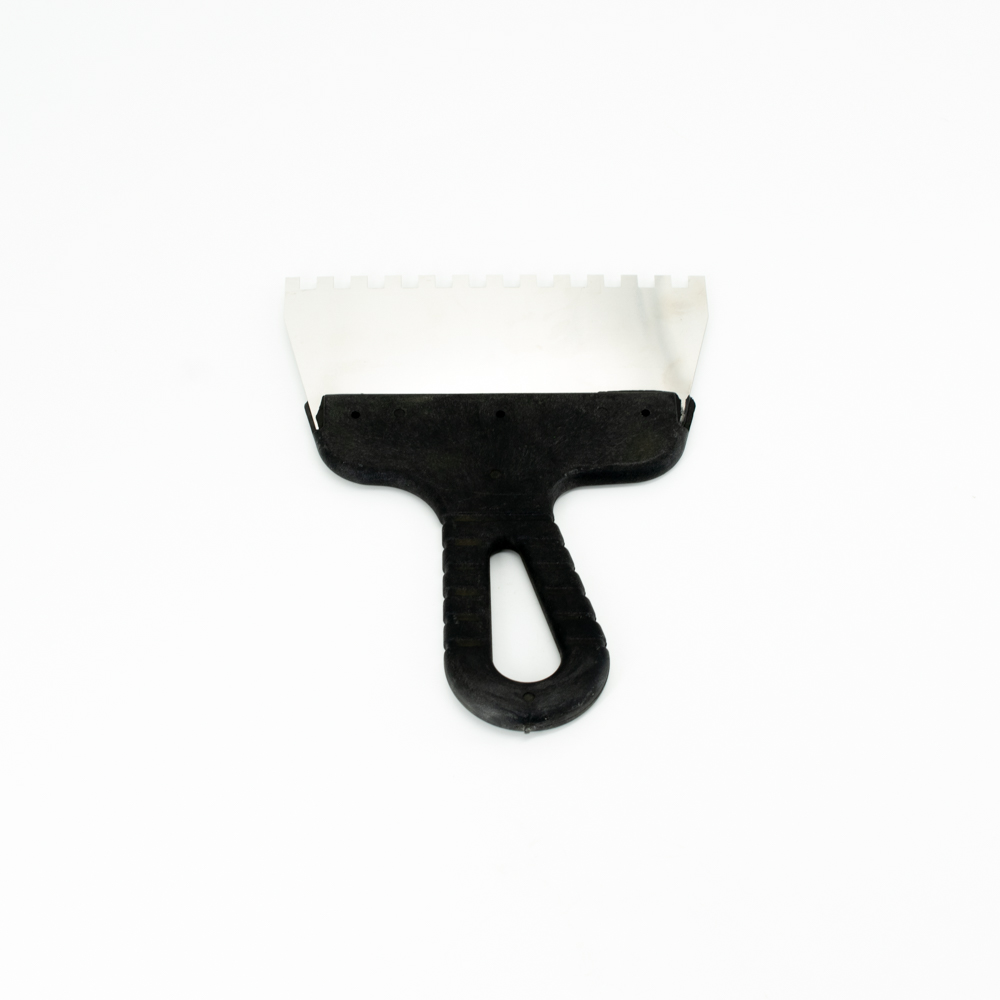 Зубчатый шпатель – это инструмент, используемый для установки плитки. Зубчатые шпатели применяются для разглаживания и расчесывания клея, который помогает крепить плитки к основанию