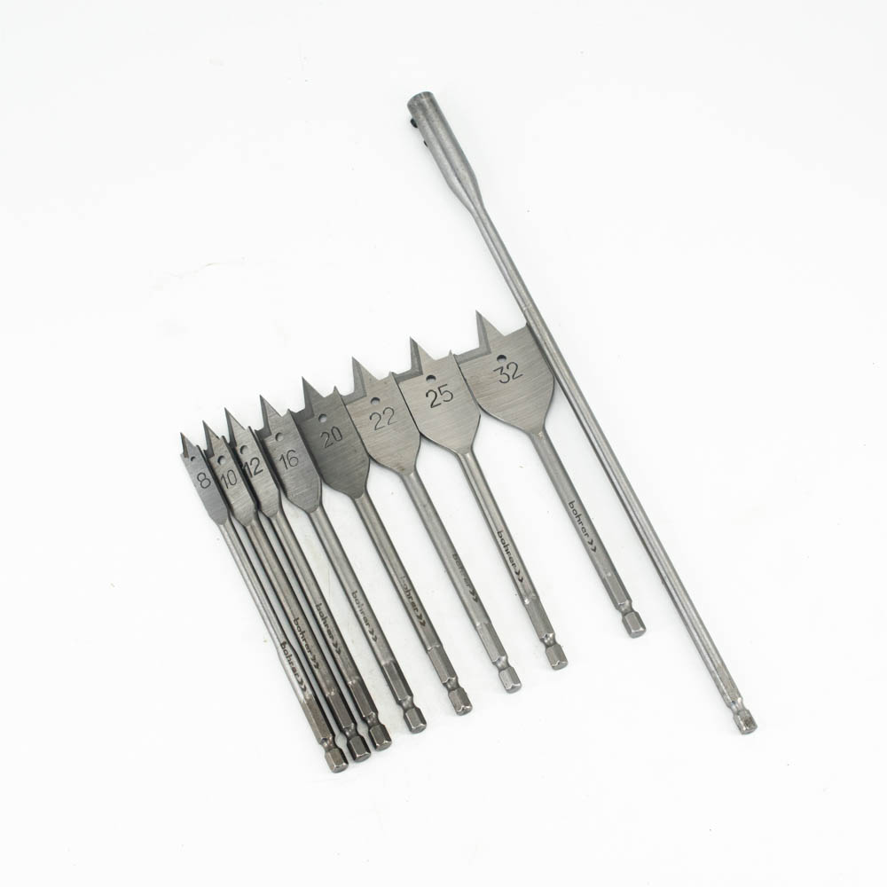 Набор сверл Bohrer перовых по дереву 8/10/12/16/20/22/25/32 х 152 мм + удлинитель (10 пред.)