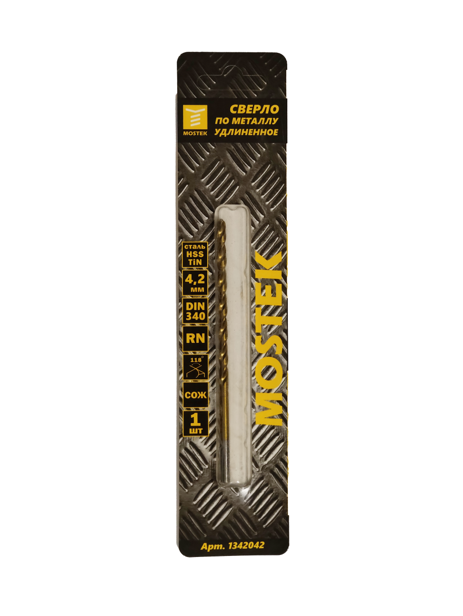 Сверло по металлу MosTek 4,2х78/119 мм удлиненное HSS-TiN (титан - нитридное покрытие) DIN 340 RN (1 шт в блистере)