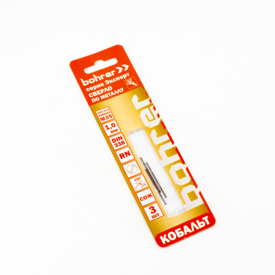 Сверло Bohrer по металлу Эксперт 1,0 мм кобальт (сталь HSS-Co5% M35) DIN 338 (3 шт. в блистере)
