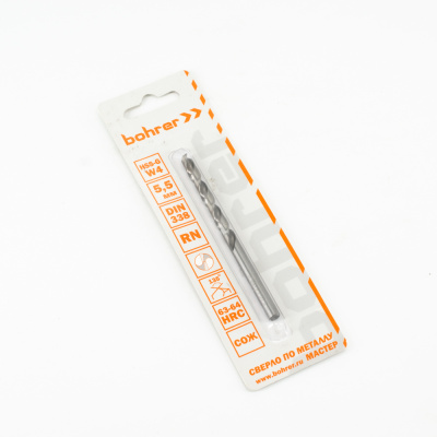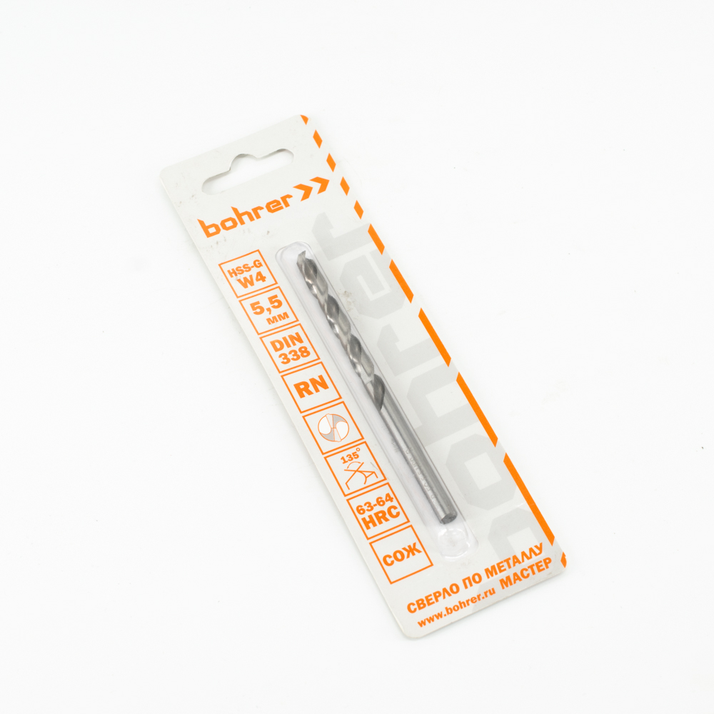 Сверло по металлу Bohrer серия Мастер 5,5 мм HSS-G DIN 338 RN (1 шт в блистере)