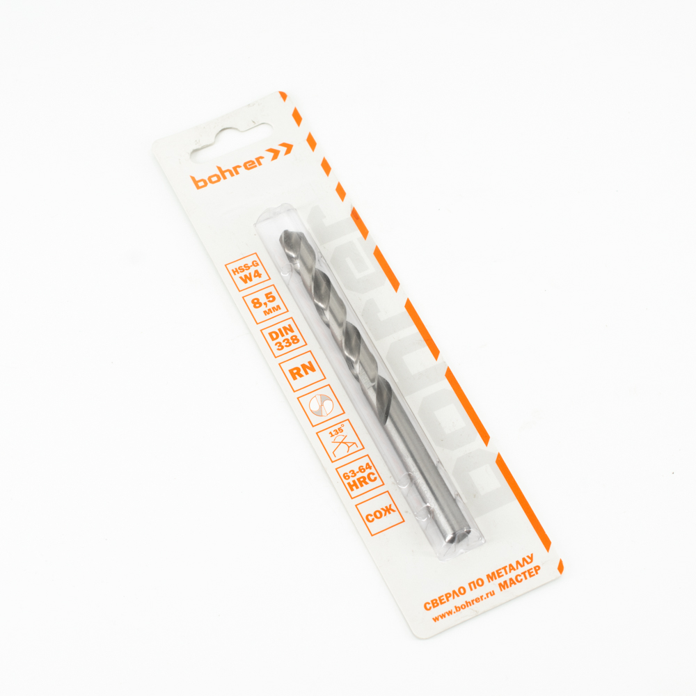 Сверло по металлу Bohrer серия Мастер 8,5 мм (HSS-G) DIN 338 RN (1 шт в блистере)