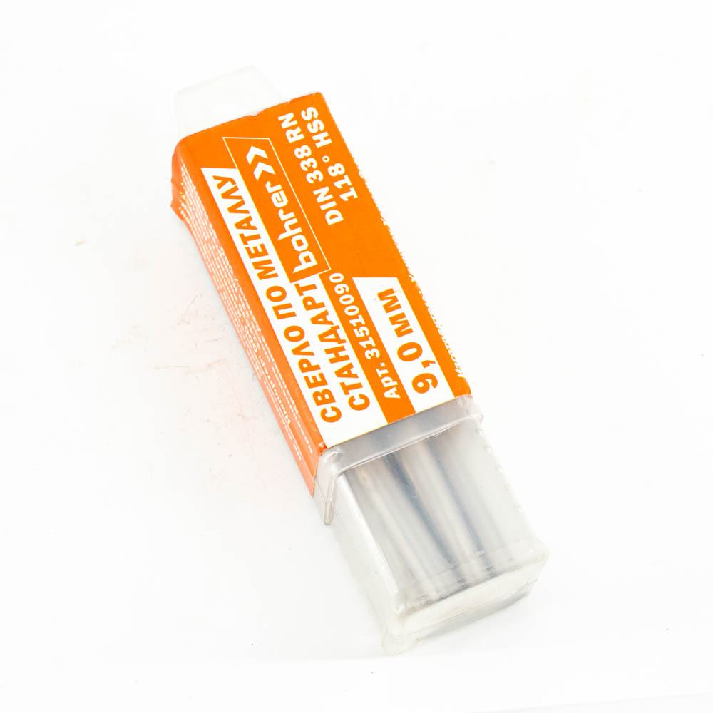 Сверло Bohrer по металлу Стандарт 9,0 мм HSS (сталь 4341) DIN 338 RN Упаковка 5 шт.