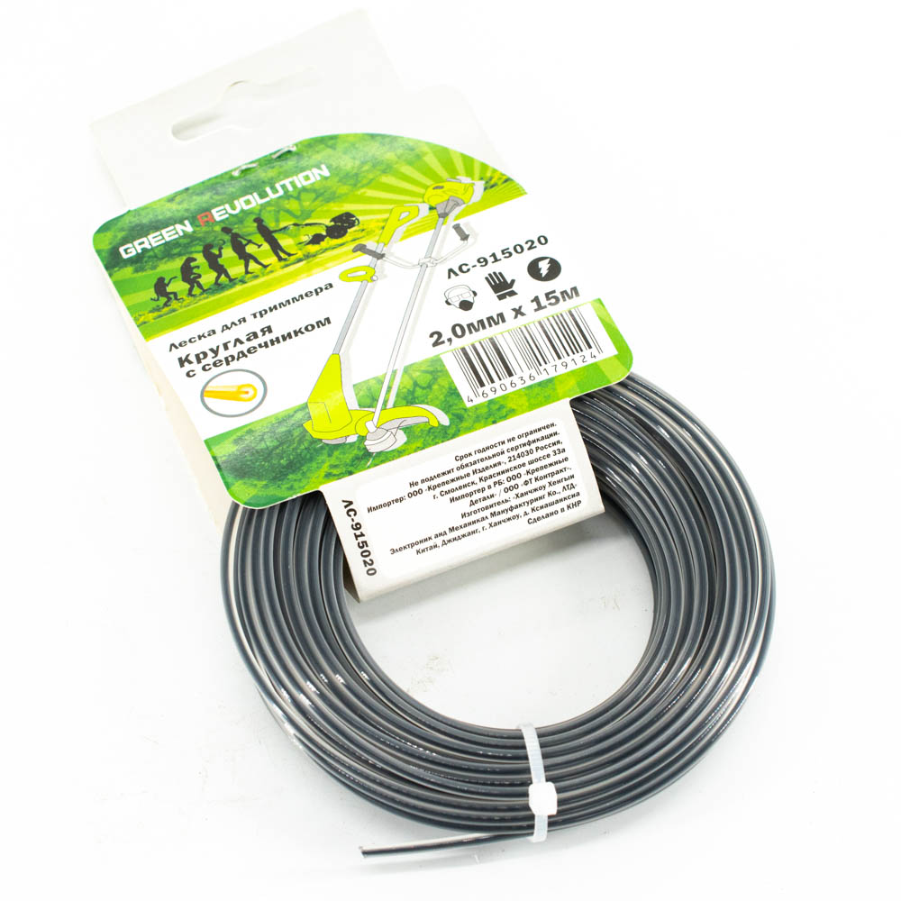 Леска Green Revolution для триммера 2,0х15м "круглая с сердечником" (100% нейлон, сердечник упрочненный нейлон)